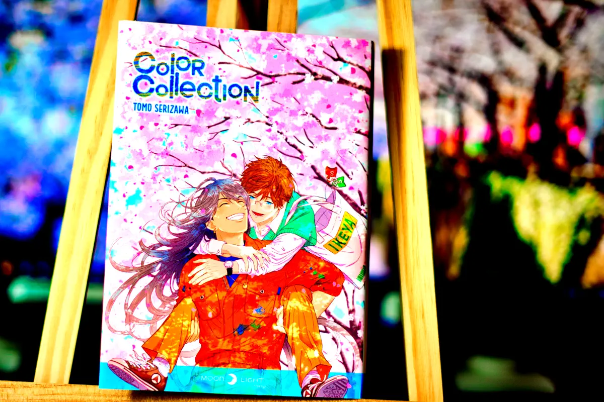 Color Collection est un manga écrit par Serizawa Tomo, auteur déjà bien habitué aux one shot yaoi, notamment chez Taifu. Il est sorti le 14 Août 2024 chez Delcourt-Tonkam dans la collection Moon Light. Comme c’était le cas pour Un second au revoir, on est en droit de se demander pourquoi un boys love se retrouve dans cette collection, ne possédant finalement aucun trait commun avec le reste de la production…