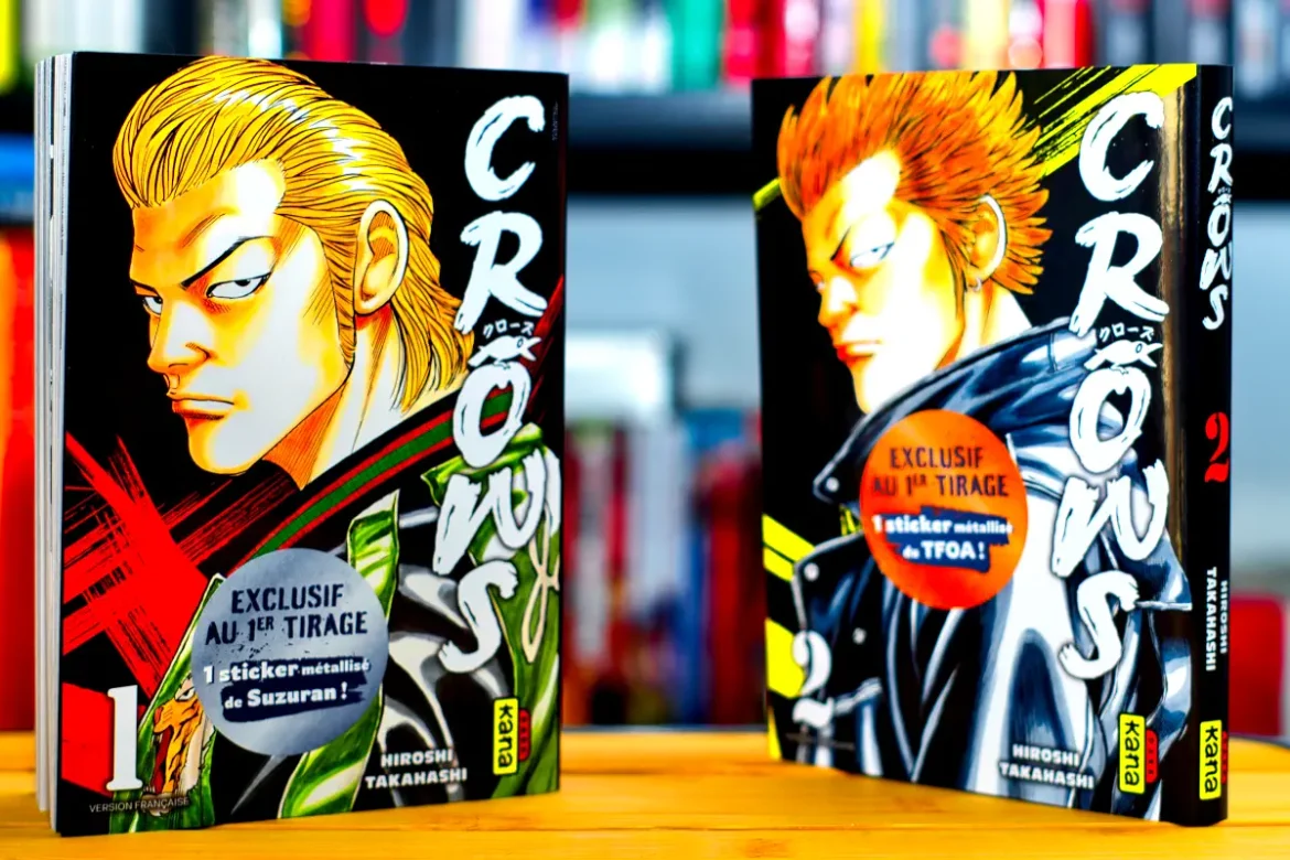 Crows est un manga écrit par Takahashi Hiroshi entre 1990 et 1998 pour un total de 26 tomes au Japon. A noter qu’on définit souvent qu’il s’agit de son premier manga alors que ce n’est pas le cas. En effet, il a commencé Hey! Riki en 1989, un seinen beaucoup plus sérieux et orienté autour du combat. Le magazine qui le pré publiait ayant fermé ses portes peu de temps après le début de la série, notre mangaka prendra un brusque virage shonen avec le présent ouvrage. D’ailleurs, celui-ci, à l’instar d’un autre dérivé de furyo bien connu, sera poursuivi dans d’autres autres œuvres, telles que Crows EXPLODE, Worst, Crows Gaiden Housenka, Kuzu!! ou encore Worst Gaiden. Il s’est également vu adapté en deux OAV en 1994 et possède 3 films qui s’inscrivent dans la saga : Crows Explode (2014), Crows ZERO (2007) et Crows ZERO II (2009). Quoi qu’il en soit, après avoir été boudé en France, comme la majorité des furyo, Crows débarque enfin chez Kana, avec les deux premiers tomes sortis le 27 Juin 2025. Le troisième est prévu pour le 12 Septembre 2025.