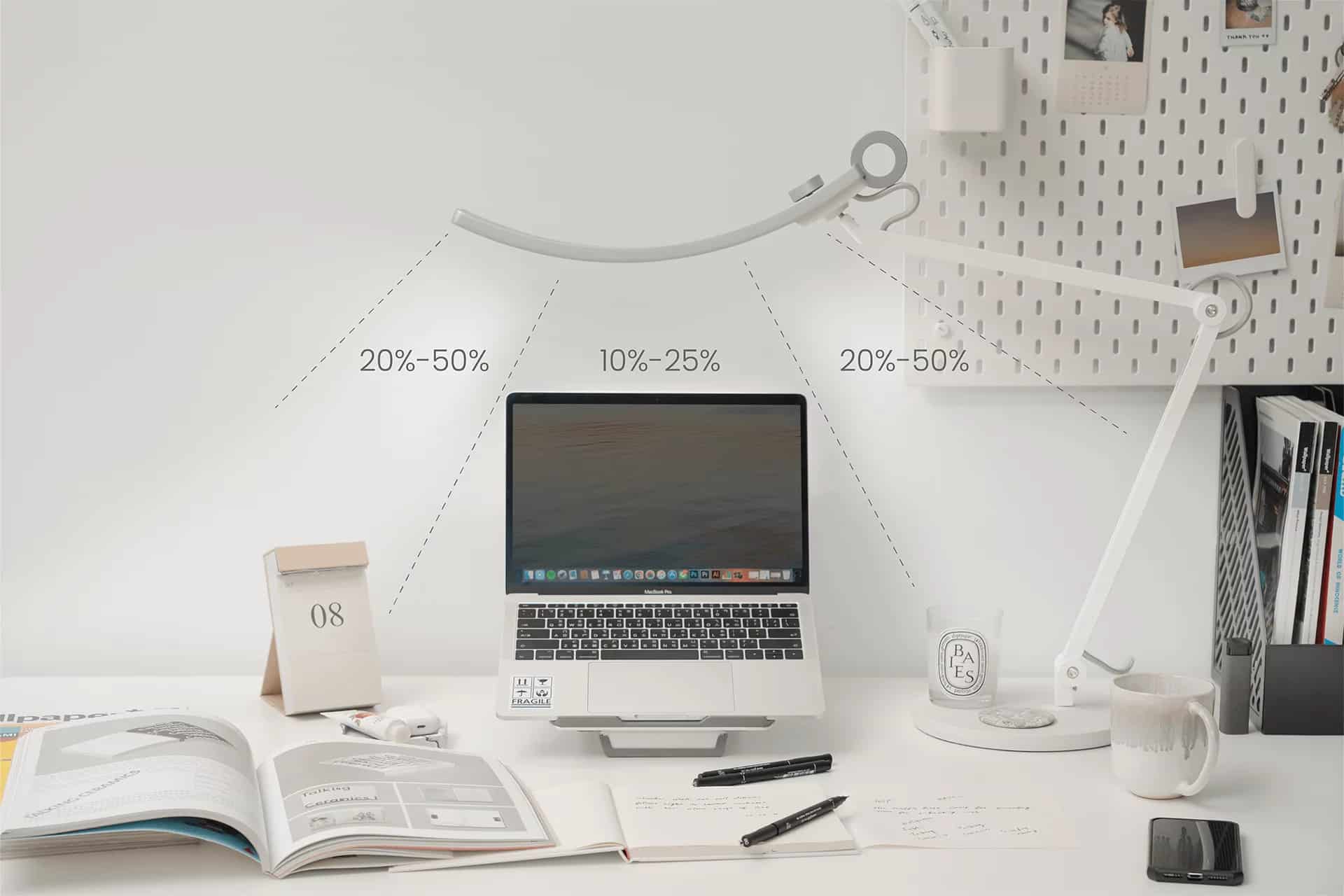 La première chose que BenQ a correctement identifiée est que ce qui est important ici n’est pas la portabilité, mais la possibilité de réglage. Il est inutile d’être léger si les utilisateurs ne peuvent pas ajuster l’éclairage en fonction de leurs besoins. La lampe de bureau WiT dispose de deux modes, l’un pour la lecture de livres, l’autre pour la lecture d’écran. Ce dernier donne à la lampe une luminosité plus faible au milieu de la LED pour tenir compte de l’émission de lumière provenant d’un écran. En outre, la luminosité et la température de couleur peuvent être réglées avec précision à l’aide du bouton. La lampe est également dotée d’un système de gradation automatique qui optimise la luminosité en fonction des conditions d’éclairage ambiantes. L’attention et le soin apportés aux options d’éclairage sont évidents. Pour les utilisateurs qui sont particuliers et sensibles à la qualité de l’éclairage de leur bureau, la lampe de bureau WiT ne va pas les décevoir. Trop lumineux ? Il suffit de la baisser un peu. Trop chaud ? C’est également facile à résoudre.