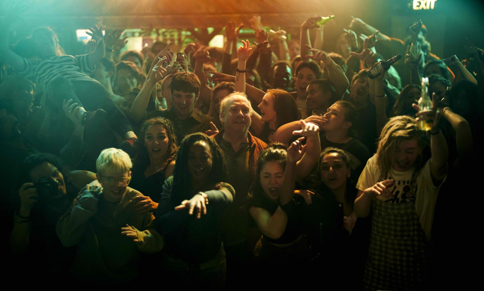 Phillip est invité à fixer un petit disque semblable à un AirTag – appelé, de façon appropriée, ‘Eulogy’ – sur sa tempe, qui l’aidera à rassembler ses souvenirs flous de Carol en regardant d’anciennes photographies. Cette technologie avancée lui permet littéralement de plonger dans les scènes des photos, de les explorer et, avec un peu de chance, de se rappeler des détails oubliés. Il est accompagné d’un ‘Guide’ (Patsy Ferran), qui le suit à travers les photos.