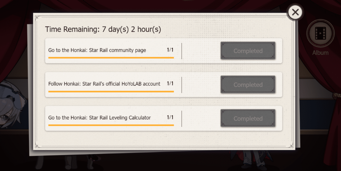Code: Récompenses d’événements Web ACTION répertoriées dans Honkai: Star Rail