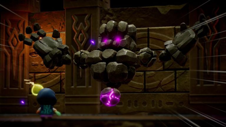 C’est à ce moment-là que le Talus s’enfoncera dans le sol, comme dans la première phase. Cette fois, cependant, le noyau n’est pas exposé dans son dos. Il est également protégé par les grandes mains rocheuses de Talus. Vous ne pouvez pas grimper sur les mains, donc votre seul choix est d’invoquer un Echo qui a des attaques à longue portée.