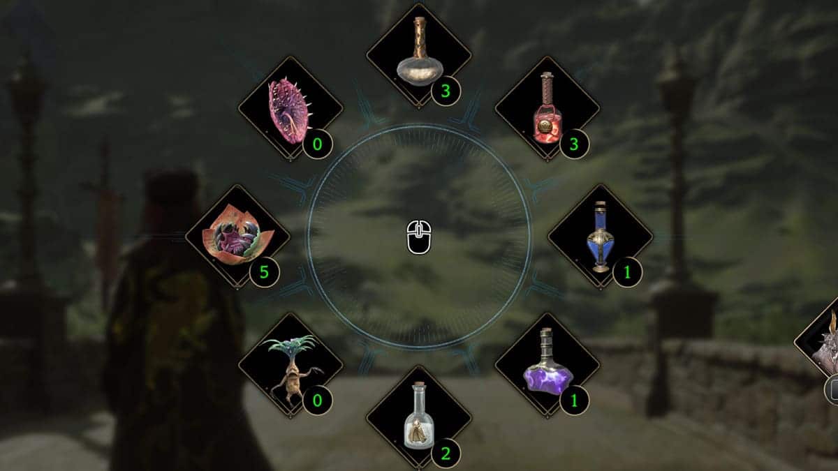 L’utilisation d’autres potions, comme une potion Thunderbrew ou Edurus, vous oblige à l’équiper à l’aide de votre roue à outils. Vous trouverez également des objets de combat comme des mandragores et du chou mâchant ici ! Sur PC, il faudra tenir Languette et passez la souris sur l’élément pour l’équiper, tandis que les contrôleurs Xbox et PlayStation utilisent KG et L1, respectivement. Une fois que vous avez la potion dans votre barre d’outils, appuyez à nouveau sur l’un de ces trois boutons pour la boire. Vous pouvez également le faire avec des objets de combat si vous souhaitez étourdir ou endommager les ennemis.
