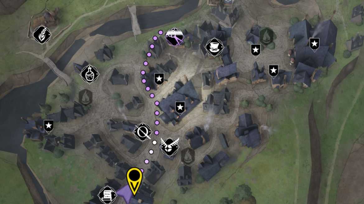 Une fois arrivé à Pré-au-Lard, vous trouverez immédiatement des tonnes de bâtiments et de boutiques à visiter. Votre destination pour changer d’apparence est le Tress Emporium de Madame Snelling, situé dans la partie nord de la zone.