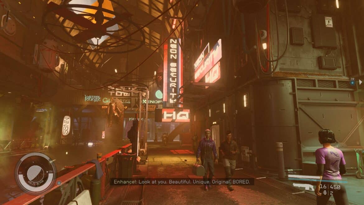 Donc, une fois que vous êtes à Neon, vous devrez trouver Neshar. Heureusement, il est facile à trouver. Depuis le port spatial, dirigez-vous vers la droite et vous finirez par vous retrouver à l’extérieur du QG de Neon Security. C’est en face de la Banque GAL et juste avant l’Astral Lounge.