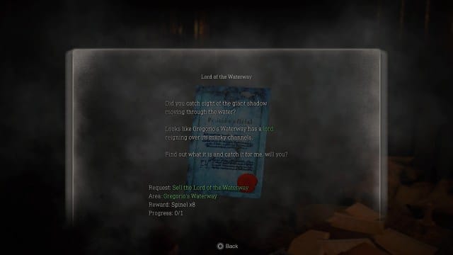 Au cours de la progression de l’histoire du DLC, vous devrez tourner une vanne pour drainer le cours d’eau afin de progresser. Une fois que vous avez abaissé le niveau de l’eau dans la voie navigable de Gregorio, vous pouvez trouver le poisson nécessaire pour compléter la demande.