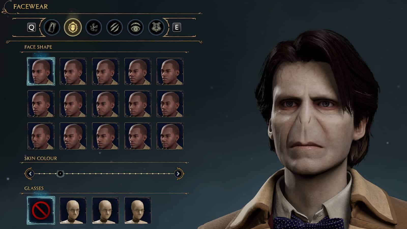 Une fois ces étapes terminées, vous pouvez créer un nouveau personnage et sélectionner Voldemort. Puisque le visage réel de Voldemort n’apparaît pas sous forme d’icône dans le menu, rendez-vous dans Portunettes dans le menu Créateur de personnage et sélectionnez l’icône Première option pour le retrouver. En prime, vous pouvez même équiper des lunettes et des cheveux pour pimenter les choses.