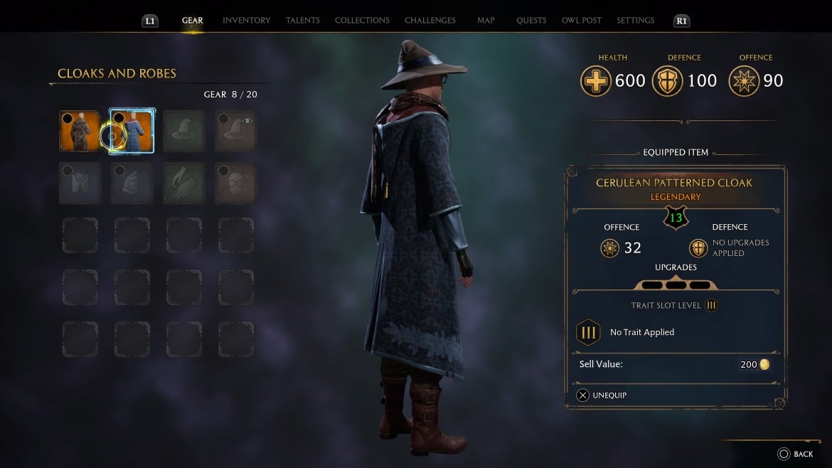 Afin de mettre votre capuche dans Hogwarts Legacy, assurez-vous d’avoir une cape ou une robe avec une capuche. Allez à vos capes et robes et regardez le dos de celui-ci, s’il a une capuche, vous êtes prêt à passer à l’étape suivante, sinon continuez à explorer et/ou à chercher des coffres au trésor jusqu’à ce que vous en trouviez un. Une fois que vous en avez trouvé un, équipez-le et passez à la deuxième étape.
