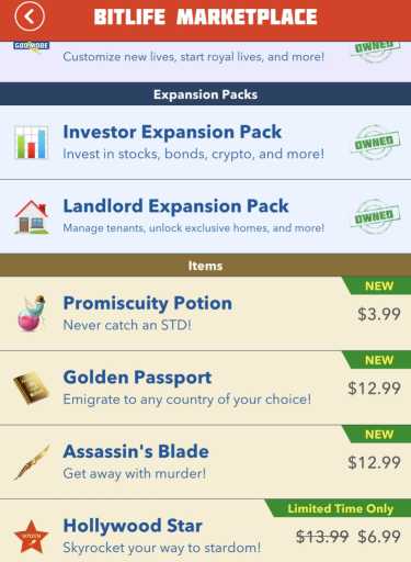 Le Étoile hollywoodienne est un élément de BitLife que vous pouvez acheter dans le Marché BitLife. Pour y accéder, rendez-vous dans votre menu principalappuyez sur le bouton du marché et faites défiler jusqu’à ce que vous voyiez « Hollywood Star ». Soyez juste prêt à dépenser l’argent réelcar il n’y a pas d’options pour obtenir cet article gratuitement.