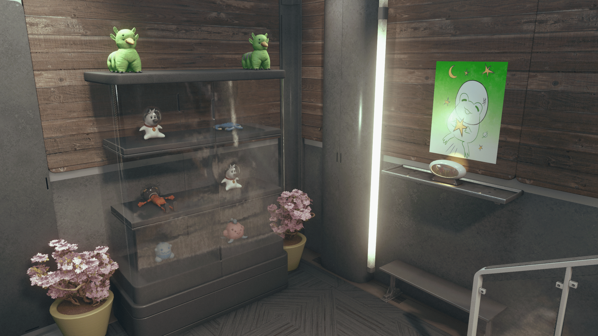 Voir ci-dessus, ma collection de peluches volées dans mon Neon Penthouse.