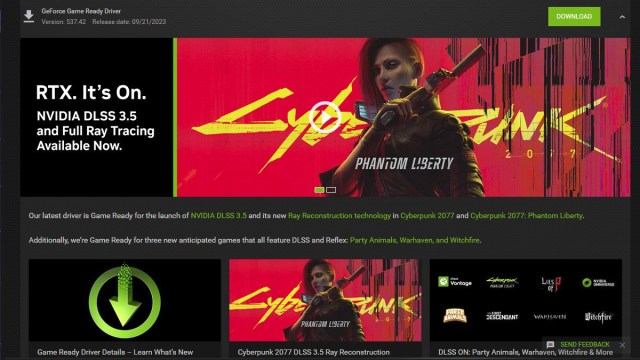 Bien que vous ayez probablement entendu cette méthode à maintes reprises, Nvidia a publié de nouveaux pilotes pour la sortie de Mise à jour 2.0 de Cyberpunk 2077 aujourd’hui (21 septembre). Pour ceux d’entre vous qui jouent avec une carte graphique Nvidia, cela pourrait très bien corriger les problèmes de plantage. Pour mettre à jour vos pilotes, ouvrez l’application Nvidia GeForce Experience fournie avec vos pilotes d’origine et passez à l’onglet Pilotes du programme. Il devrait être bon d’installer à partir de là.