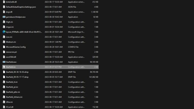 Accédez à Documents/Mes jeux/Starfield sur votre PC et créez un nouveau document texte. Dans le document texte, collez les lignes suivantes dans :