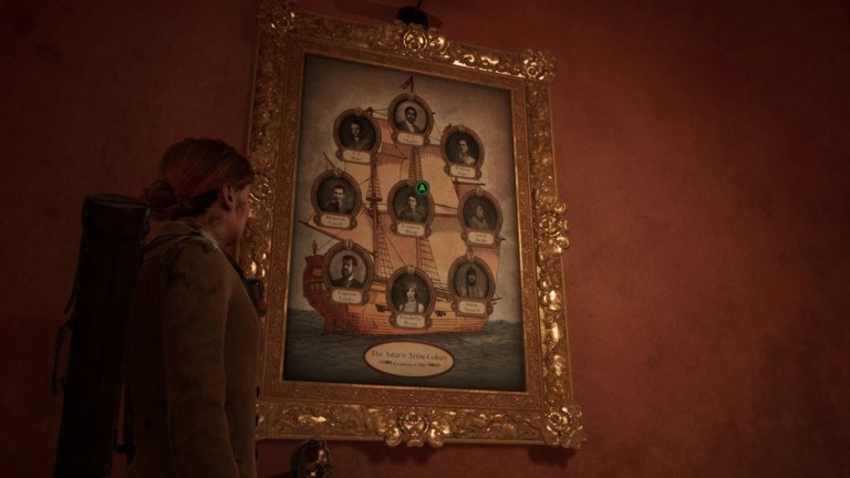 Maintenant, dirigez-vous vers les peintures sur le mur en face. Commencez à retourner les peintures jusqu’à ce que vous puissiez voir la pourriture noire se propager parfaitement à travers le mur. Les seuls noms visibles devraient être William Arges, Franklyn Mosig, et Norah Keith.