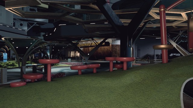 Une fois sur place, vous devriez voir le magasin Centaurian Arsenal tout droit. Il est difficile de le manquer avec ses grands murs de bronze et la grande écriture jaune au-dessus. Courez là-bas et dirigez-vous par la porte d’entrée.