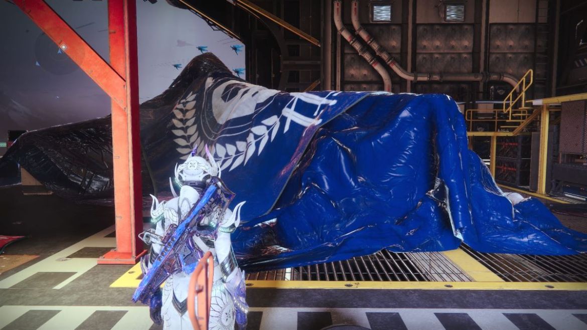 Dirigez-vous vers le Hangar, où se trouvait Amanda. Vous trouverez un mémorial qui s’est lentement développé au cours des dernières semaines. Mais à côté de ce mémorial, à droite, se trouve son navire. Une bâche avec tous les logos Guardian a été posée dessus. Approchez-vous de lui et interagissez avec lui.