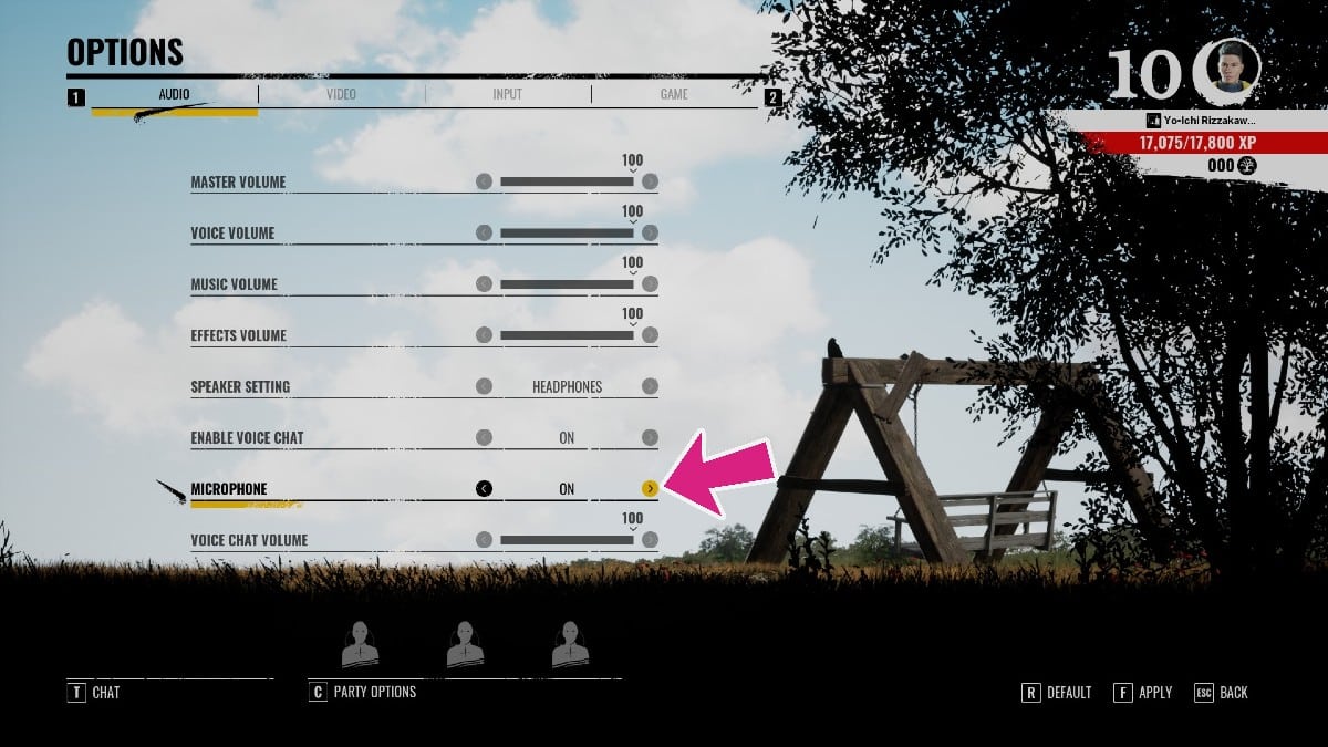 Dans le menu Options, vous voudrez aller dans la partie Audio et trouver Microphone. Passez de Push à Talk à SUR pour confirmer que vous disposez d’une connexion microphone toujours accessible, permettant à votre équipe d’entendre tout ce qui se passe lorsque vous parlez. Cela pourrait être un peu désagréable si vous avez beaucoup de bruit de fond, mais si vous prévoyez d’être furtif tout comme votre personnage, vous serez prêt à partir.
