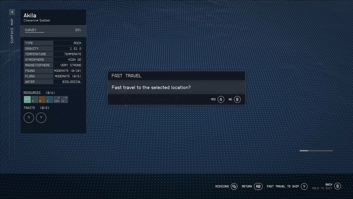 Lors de l’exploration d’une planète dans Starfield, il existe deux méthodes de voyage rapides, soit via la carte, soit en utilisant le scanner.