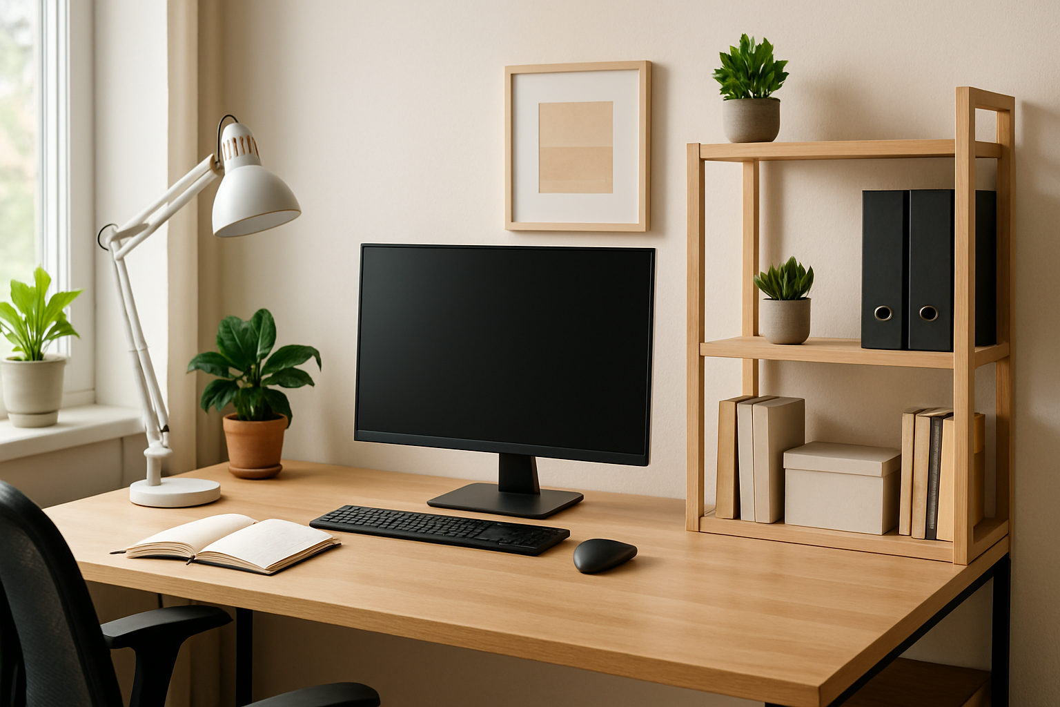 Un bon éclairage artificiel complète la lumière naturelle. Privilégiez une lampe de bureau orientable avec température de couleur réglable. L’éclairage indirect évite la fatigue oculaire et crée une ambiance agréable.