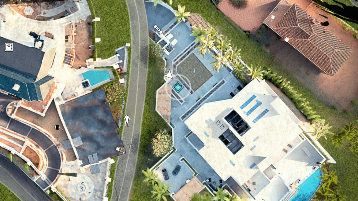 Retournez par la porte vitrée vers la piscine et vous verrez qu’il y a une scène installée avec une toile de fond Gods and Whisky. Approchez-vous de la cabine de DJ en face, puis lancez la musique. Et préparez-vous pour un énorme trésor de zombies.