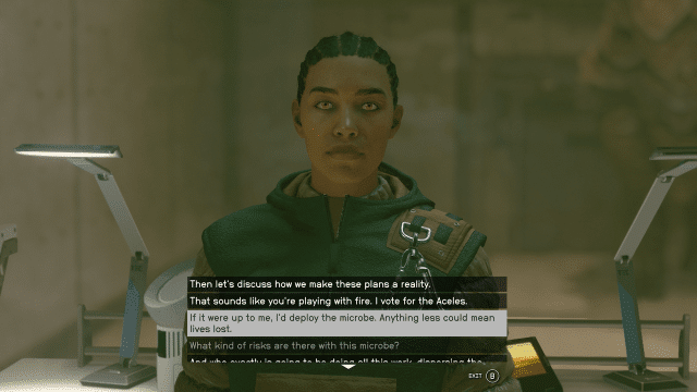 Ramener les Aceles de l’extinction pourrait être la décision la plus « sûre », mais il faudra beaucoup plus de temps pour éliminer la menace Terrormorph, sans compter que la réintroduction d’un organisme éteint pourrait avoir des conséquences imprévues. D’autre part, le virus microbien est beaucoup plus rapide et plus efficace pour tuer les Terrormorphs, mais pourrait potentiellement muter, ce qui pourrait être dangereux. C’est presque comme si Starfield avait donné aux joueurs un dilemme Jurassic Park vs I Am Legend, mais je digresse.