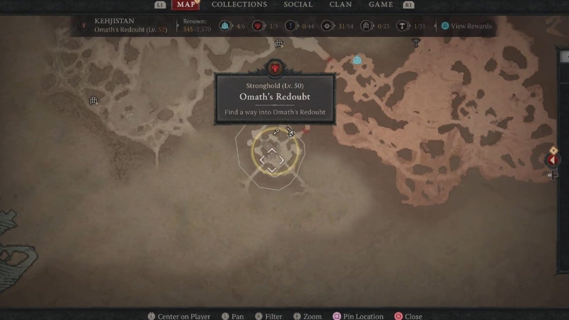 La redoute d’Omath est située dans la partie sud du Kehjistan, qui est la quatrième zone majeure de Diablo 4. En tant que l’un des points les plus au sud du Kehjistan, vous devrez vous rendre le plus au sud-ouest possible dans Sanctuary pour atteindre cette forteresse, et elle se trouve juste en dessous de l’une des zones PvP.