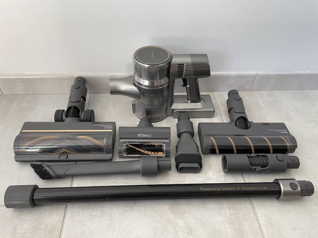 Le Dreame R20 n’offre pas d’innovations extraordinaires. Mais il possède toutes les caractéristiques essentielles d’un aspirateur sans fil haut de gamme, de l’éclairage du sol aux multiples brosses.