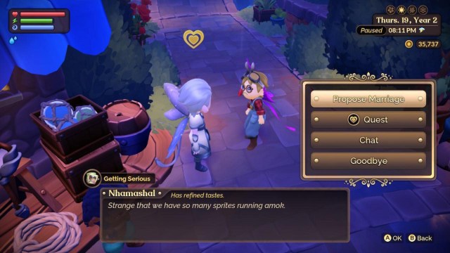 Pour vous marier à Fae Farm, vous devez commencer par apprendre à connaître votre prétendant potentiel. Vous n’êtes pas limité à un, vous pouvez flirter avec tous les intérêts amoureux potentiels en ville. En fait, il est impossible de ne pas le faire. Vous constaterez qu’au fur et à mesure que vous parlez aux gens, votre relation augmente et vous finirez par entrer dans le statut de « flirt ». C’est presque comme le lycée 2.0.
