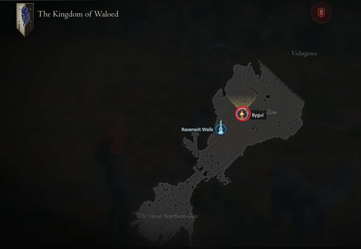 Mis à part un étrange gobelin voyou, les marques notoires de Waloed ont été très faciles à trouver. Bygul n’est pas différent. Chargez dans les murs de Ravenwit à partir de la carte du monde. Depuis l’obélisque, allez tout droit et vous verrez probablement cette panthère couronnée immédiatement. Ses bois brillent d’un bleu vif et sa longue queue ressemble à celle d’un scorpion.