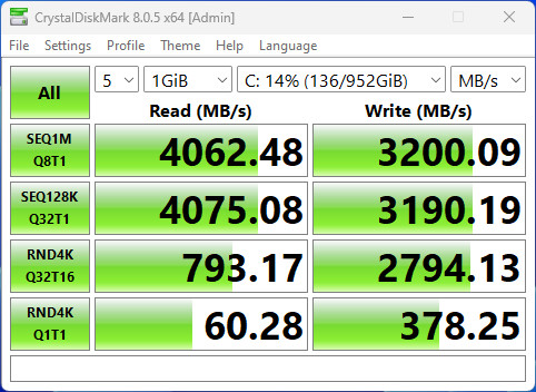 J’ai également testé les performances du SSD à l’aide des outils AS SSD et CrystalDiskMark.
