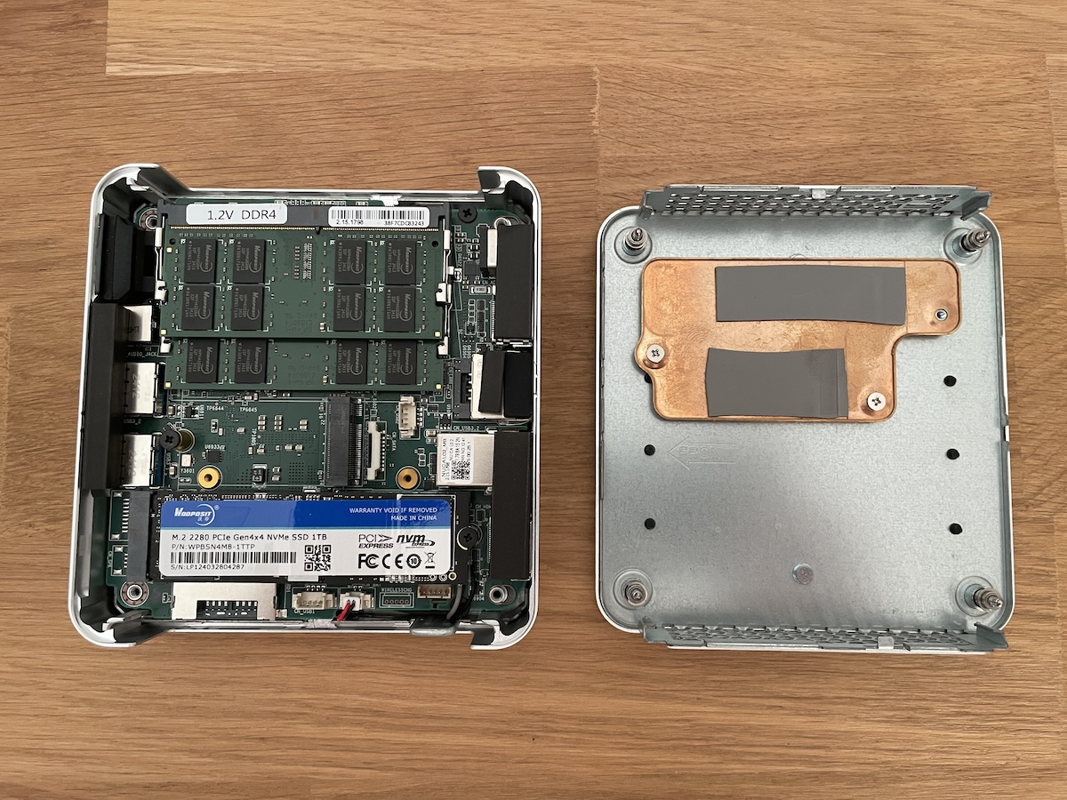 À l’intérieur, le XT12 Pro offre un accès facile aux SODIMM et au SSD NVMe PCIe 4.0 Lexar de 1 To, permettant leur remplacement. Il est également possible d’ajouter un second SSD NVMe, à condition qu’il mesure 42 mm de longueur. La plaque arrière ne se fixe que d’une seule manière, garantissant un bon contact entre les SSD et le dissipateur thermique.