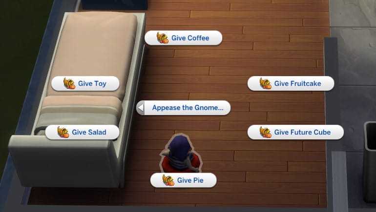 Les Sims 4 Options de cadeaux Gnome Harvestfest