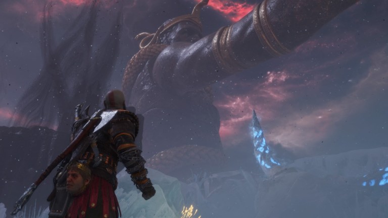 Si vous vous souvenez de God of War 3, vous savez que Kratos arrache la tête d’Helios et la garde comme un moyen de révéler des objets avec de la lumière. Pendant un bref moment dans le labyrinthe du Valhalla, la tête de Mimir que Kratos porte toujours sur lui devient Hélios. Vous pouvez entendre sa voix plus tôt dans le DLC, mais cette section ramène la tête du Dieu Soleil dans son intégralité.