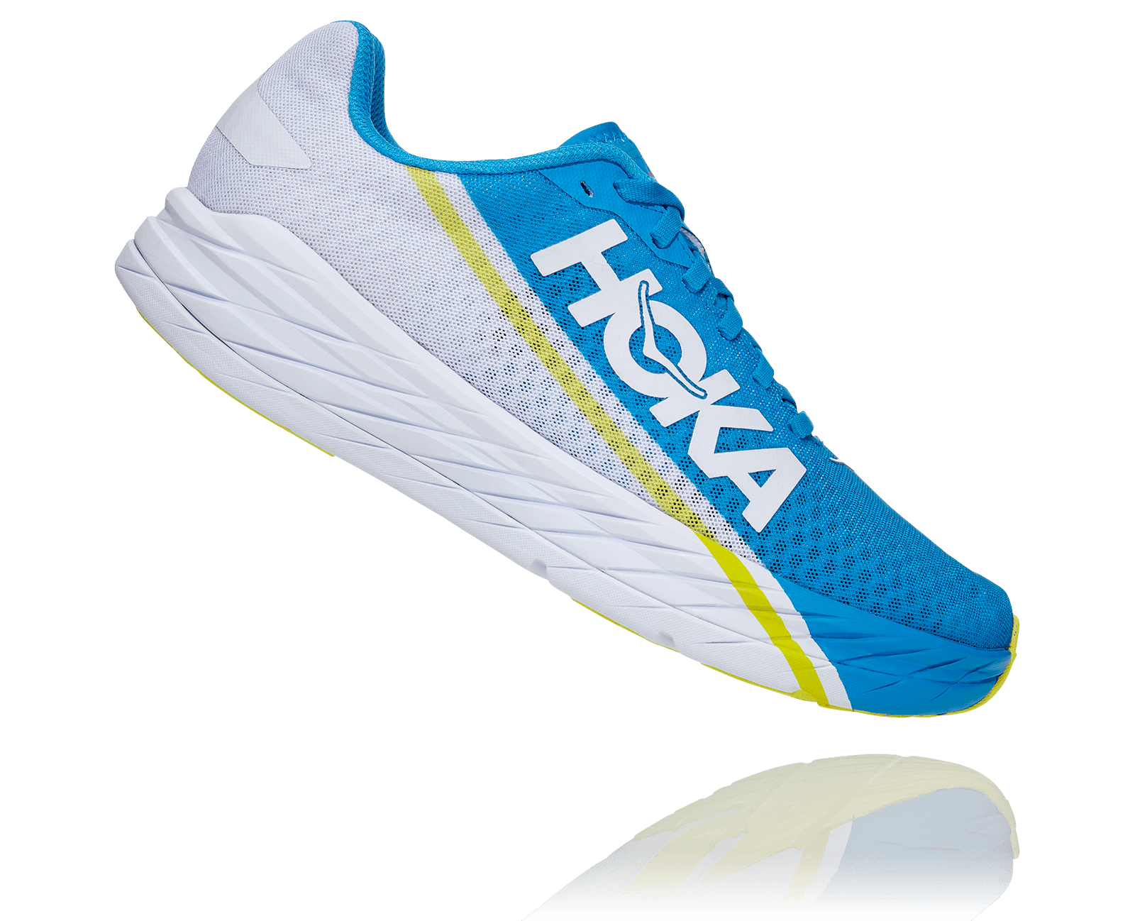 Pensée pour la compétition, ce modèle de vitesse utilise la mousse CMEVA, la plus légère de HOKA. Elle procure plus de stabilité et une absorption des points d’impact. Le Meta-Rocker placé à l’avant du pied permet d’apporter de la réactivité à chaque foulée. La Rocket X est également équipée d’une tige en mesh respirant et d’une semelle extérieure légère en mousse caoutchoutée garantissant un poids réduit. Seules les zones à l’avant du pied et au niveau du talon ont été renforcées pour un gain de poids.