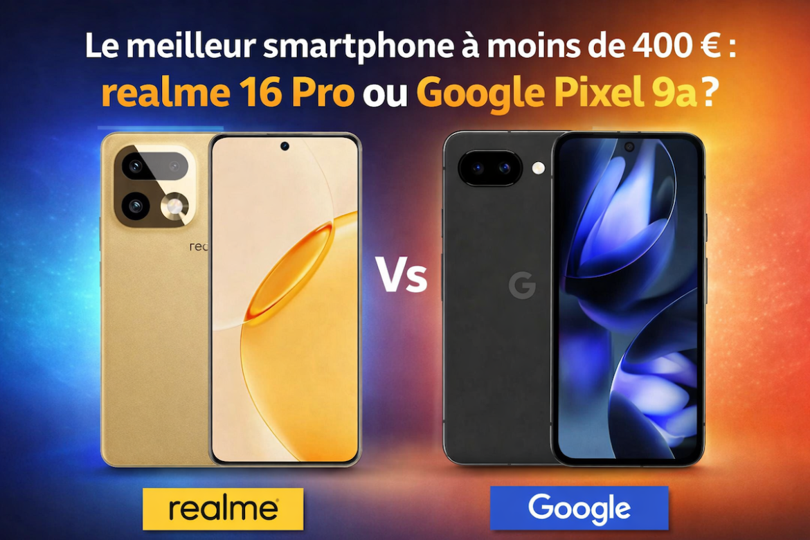 Deux smartphones à moins de 400 € qui ont tout pour séduire, mais avec des philosophies radicalement différentes. D’un côté, le realme 16 Pro, récemment débarqué sur le marché français avec une fiche technique offensive et un tarif agressif. De l’autre, le Google Pixel 9a, qui mise sur la réputation photo de la gamme Pixel et une intégration logicielle soignée.