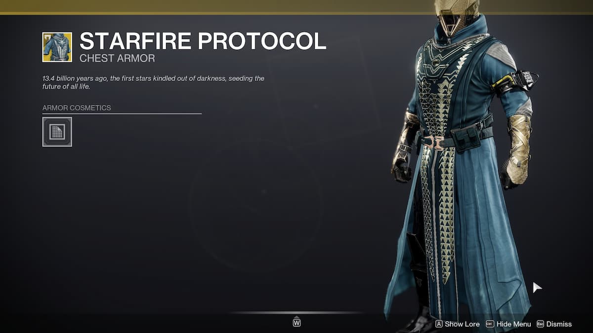 Pour les non-initiés, Starfire Protocol est une exotique qui donne une charge de grenade de fusion solaire supplémentaire, qui fait que les grenades de fusion tuées restaurent toute l’énergie des capacités de classe (dans le cas des Warlocks, Guérison ou Faille d’habilitation), et que les dégâts de l’arme habilitée rendent 20 % de charge de grenade toutes les demi-secondes environ. En d’autres termes, c’est de la folie.