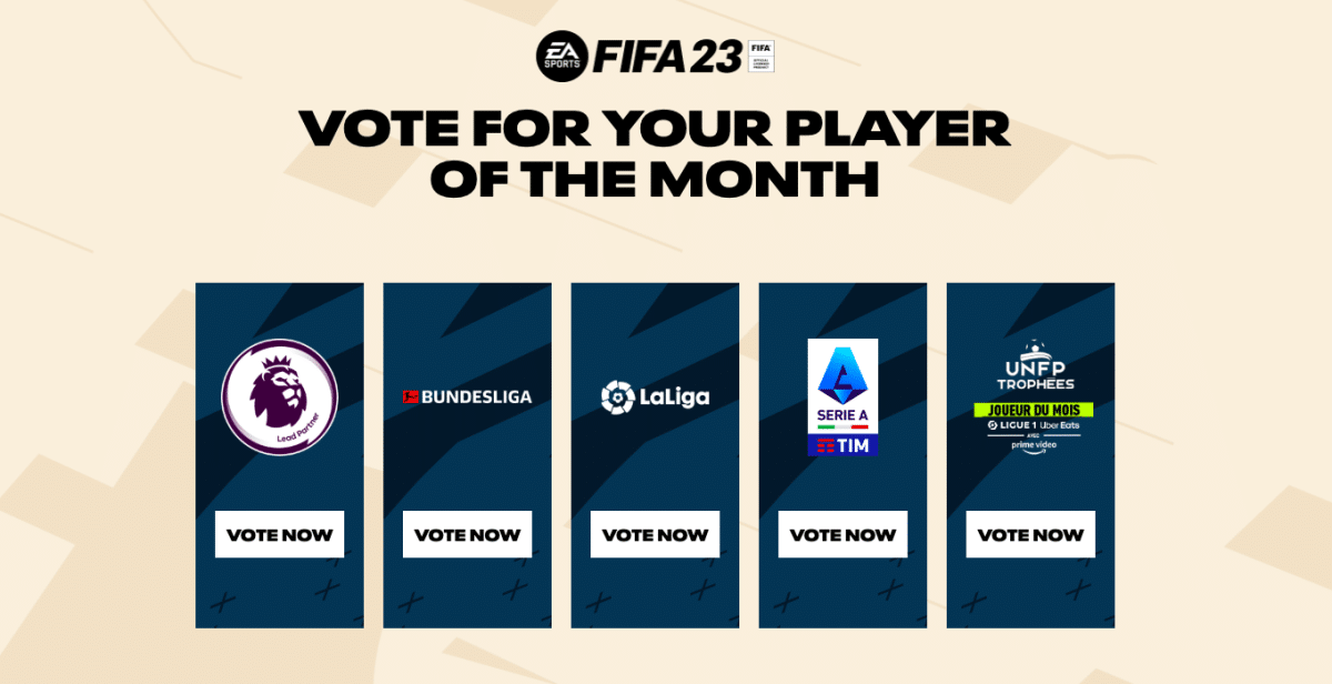 Avec la fin janvier déjà arrivée, il est temps de voter pour le joueur du mois de FIFA 23. Ici, nous énumérerons les nominations des joueurs du mois de la Bundesliga, de la Premier League anglaise, de la Liga et de la Serie A EA.