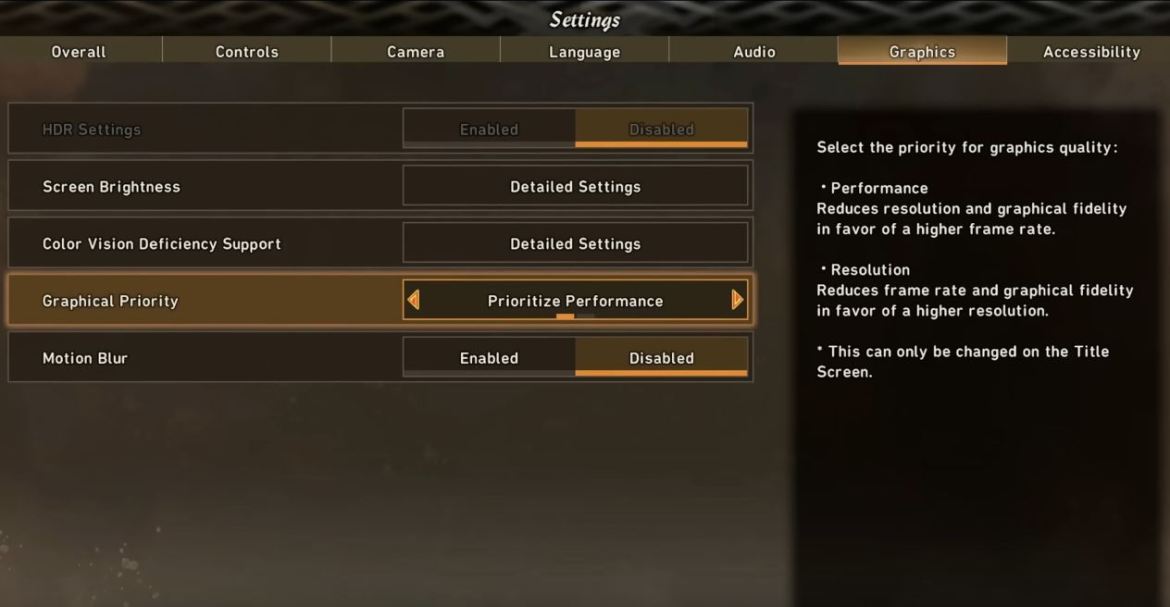 De plus, l’effet Motion Blur dans les deux modes semble très mauvais, voire glitch, en particulier par temps de neige ou de pluie, il est donc préférable de le désactiver, que vous jouiez en mode Performance ou Résolution. L’option se trouve dans les paramètres – graphiques, juste en dessous de la bascule de priorité graphique.