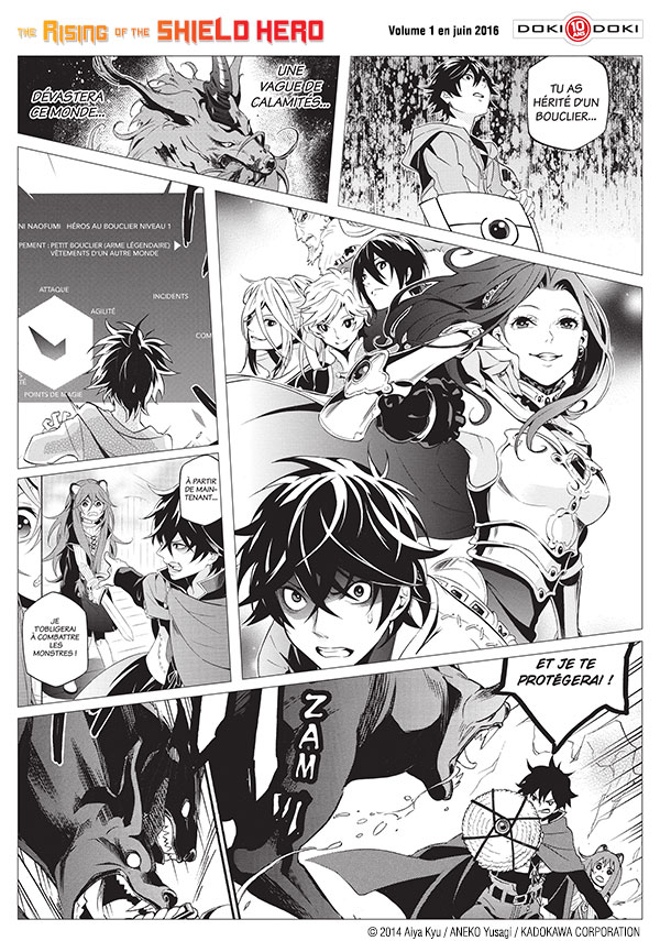 The Rising of the Shield Hero est un manga d‘Aiya Kyu adapté du light novel écrit par Aneko Yusagi et illustré par Minami Seira. Pour cette adaptation, Aiya Kyu nous offre un style de dessin et un chara-design assez classique mais collant avec l’univers RPG de l’univers. Le héros principal est un peu banal, il est gentil mais laisse paraître une certaine rudesse envers les autres. Cette oeuvre se base principalement sur la condition difficile de notre héros et ses principaux questionnements : Comment terminer une quête sans pouvoir se battre et comment se faire des alliés quand tout le monde nous déteste ? En alliant ces deux points, Naofumi se démarque un petit peu des héros génériques des mangas du même genre dont il se rapprochait avant de démarrer son aventure. Les relations entre les personnages sont, pour l’instant, intéressantes à suivre et j’ai hâte de voir qui notre héros va rencontrer dans les futurs tomes.
