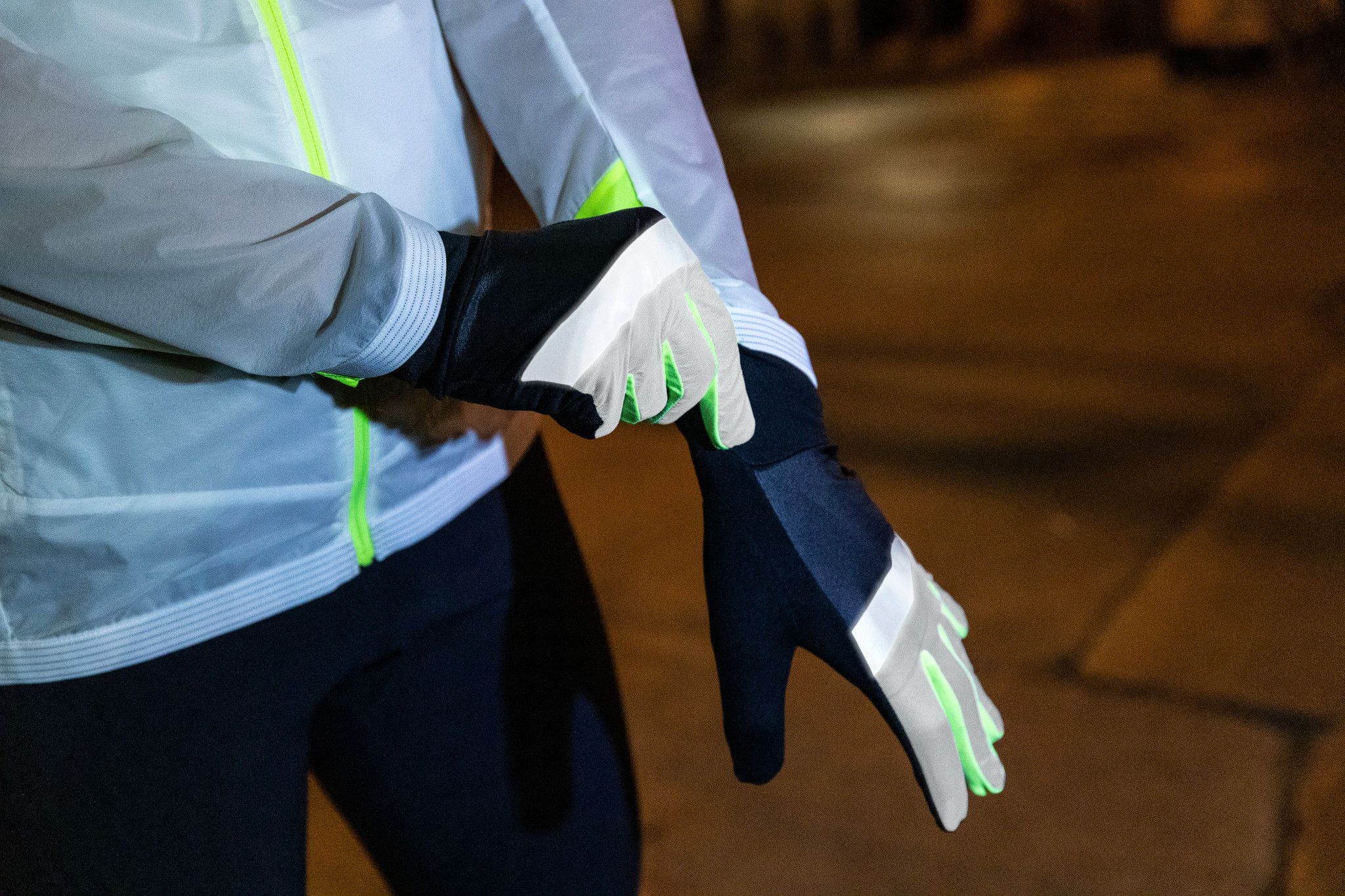 • Accessoires à haute visibilité pour le running (gants, chaussettes, bonnet)