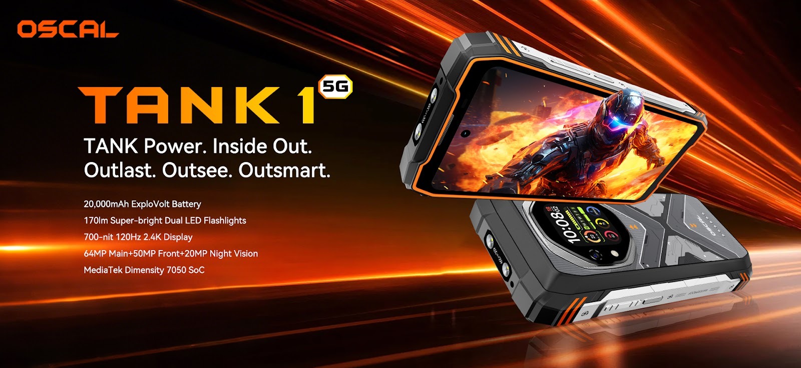OSCAL dévoile le TANK 1 — Le premier smartphone robuste 5G à double écran doté d’une batterie de 20 000 mAh et d’une vision nocturne 20 MP