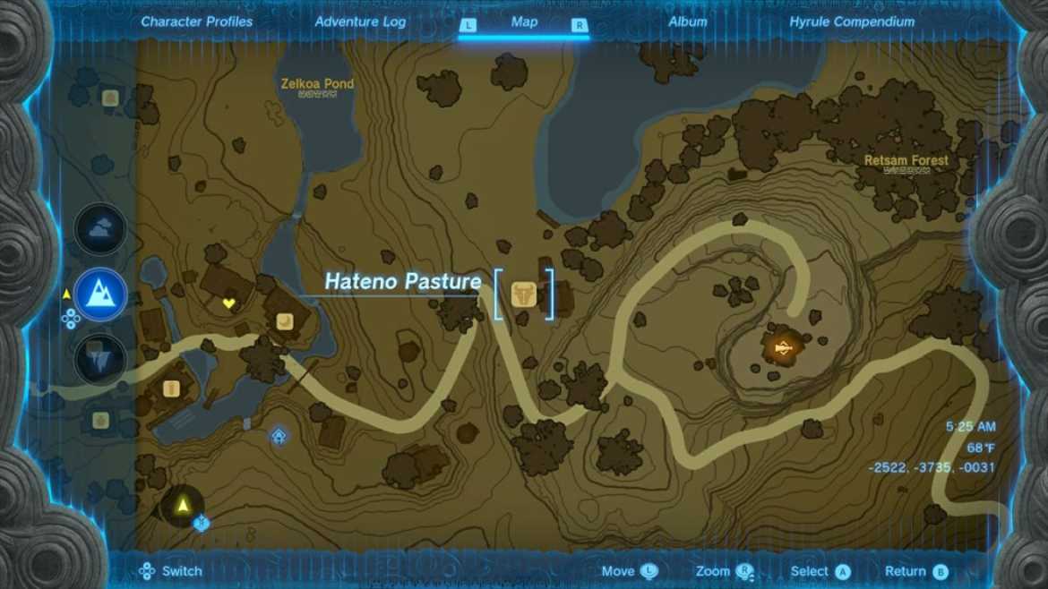 Emplacement du pâturage Hateno dans The Legend of Zelda: Tears of the Kingdom (TOTK)