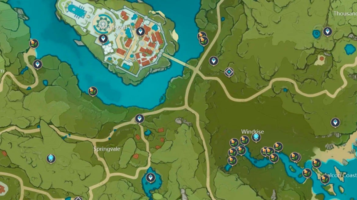 Visiter les endroits susmentionnés dans les régions vous garantira de trouver ces fleurs. Ils réapparaîtront tous les 3 jours, vous devrez donc attendre un peu si jamais vous en avez besoin de plus. Voici leurs emplacements à Mondstadt.