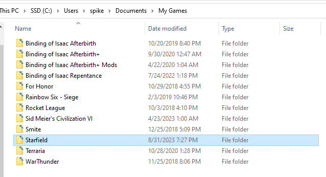Les fichiers de sauvegarde Starfield sont automatiquement stockés dans le dossier Mes jeux, qui se trouve dans votre dossier Documents. Pour être plus précis, vous pourrez trouver vos fichiers de sauvegarde Starfield dans le répertoire suivant : C:Users(votre nom d’utilisateur)DocumentsMy GamesStarfield.