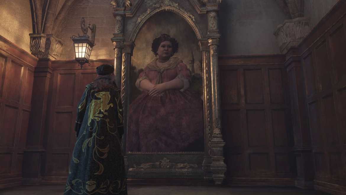 Ci-dessous, une photo d’un Poufsouffle tentant d’entrer dans la salle commune de Gryffondor pour montrer ce qui se passe lorsque vous utilisez différents personnages pour ouvrir la porte. La peinture ne bougera pas et donnera même un commentaire sarcastique en retour. Un élève non Gryffondor ne peut pas entrer dans la salle !