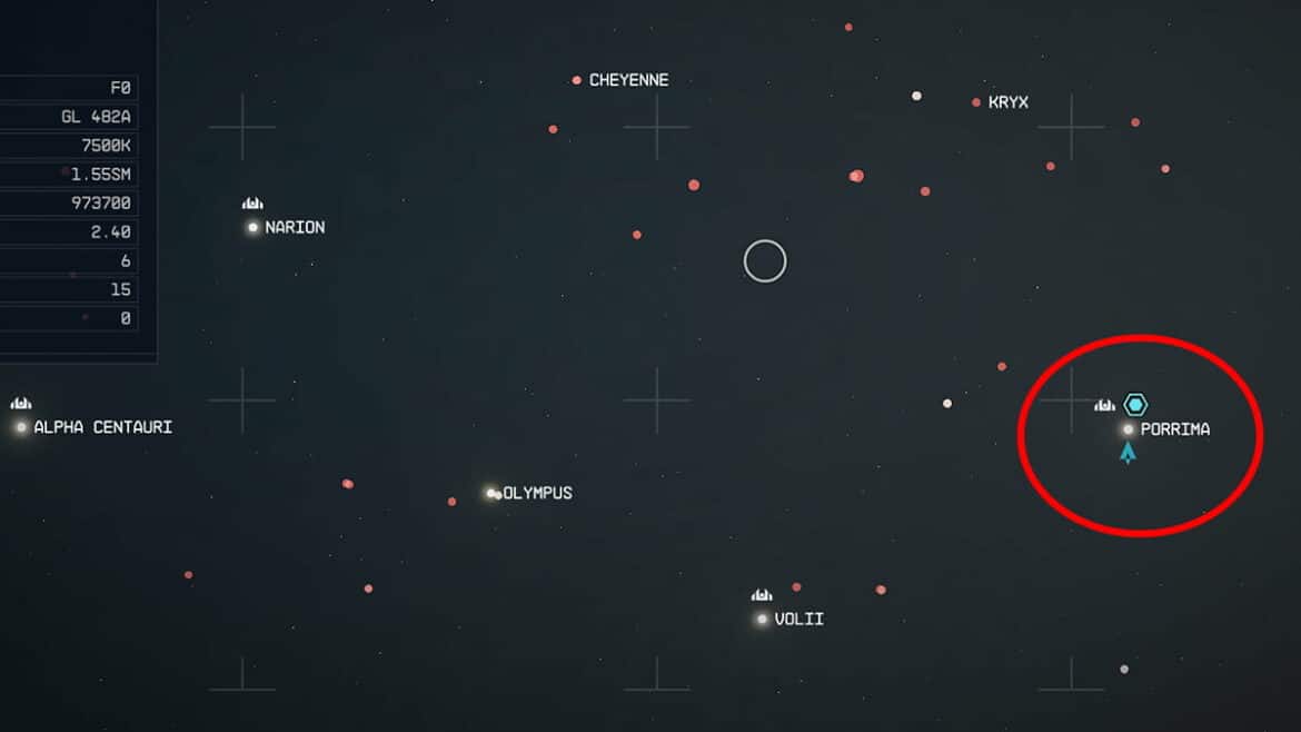 Emplacement du système Porrima Starfield