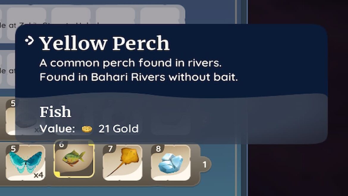 Pour attraper la perchaude, les joueurs doivent se rendre dans la baie de Bahari et localiser l’une des rivières de la région. La perchaude peut être capturée à tout moment de la journée et ne nécessite aucun appât, vous pouvez donc commencer votre voyage de pêche dès que vous en avez envie. Pour atteindre la baie de Bahari, dirigez-vous vers l’est sur la carte de la vallée de Kilima. Une fois sur place, ouvrez la carte et choisissez la rivière de votre choix pour commencer à pêcher.