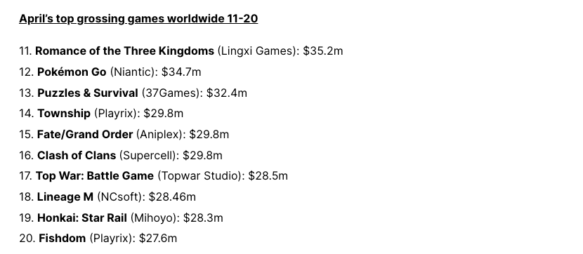 Selon mobilegamer.biz, Pokemon GO a connu sa plus forte baisse de revenus en avril 2023 depuis 2018. Les achats dans le jeu ont chuté de 40 % sans précédent pendant cette période. En raison de cette baisse importante en avril, Pokemon GO est sorti du top 10 des jeux mobiles les plus rentables.