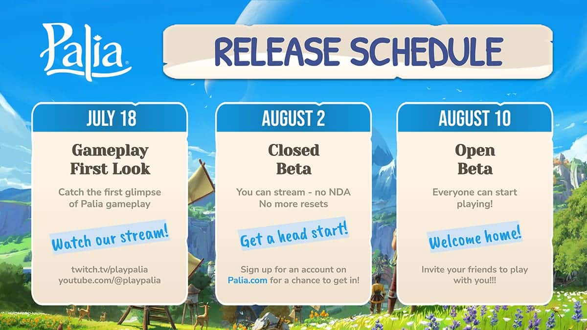 La première session bêta fermée officielle de Palia débutera le 2 août 2023 à 10 h 00 PT. En créant un compte sur le site officiel de Palia et en acceptant une invitation par e-mail, vous avez une chance d’être accepté dans cette période bêta pour jouer au jeu de première main !