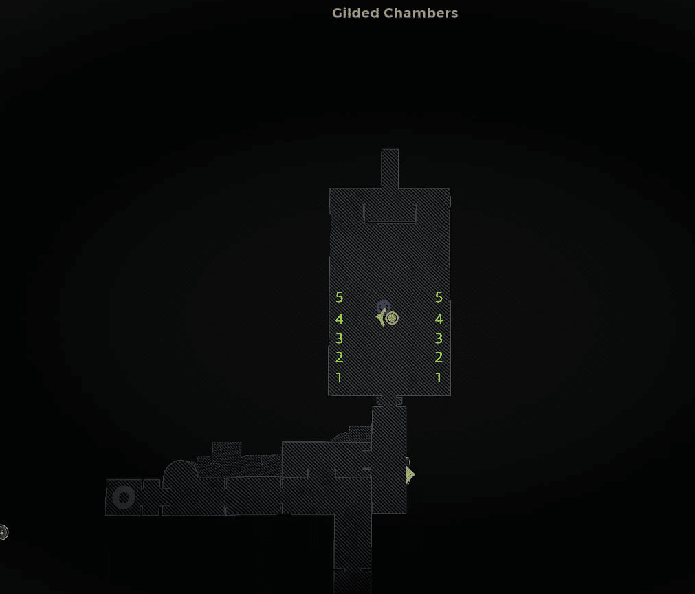 Je dis que vous rencontrerez cette énigme dans les Chambres dorées, mais il est tout aussi probable que vous la rencontriez dans le Grand Hall. Quoi qu’il en soit, vous saurez que vous êtes au bon endroit si vous trouvez un long couloir avec une série de chaises dirigées vers une plate-forme. Et au sommet de cette plate-forme ? Une porte verrouillée qui ne peut naturellement être ouverte qu’en résolvant des énigmes.