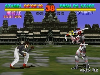 Graphiquement, nous avons droit à un jeu de qualité, avec une 3D bien maîtrisée, alors que nous n’étions qu’au tout début de ce que la Playstation avait à offrir. Les environnements sont très jolis, avec des décors très différents les uns des autres, on retrouvera donc le temple d’Angkor Vat, la banquise, un stade, une île…, du tout bon ! A noter que les environnements sont infinis à l’époque, c’est-à-dire qu’il n’y a aucun mur pour bloquer vos déplacements, ce qui dynamise davantage les joutes.